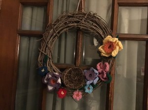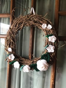 She also took me to a wreath making class. I no longer have the one wreath, but I have the second one I made. I still hang it on our door every Christmas season. I also found that crocheting with young ones was much easier and safer than trying to knit. I could make all kinds of things so quickly. It gave me something that was for me and then I gave most of it away as gifts. I also began making my own wreaths when we moved into the house we are in now. I finally had a front door where I could safely hang crocheted items.