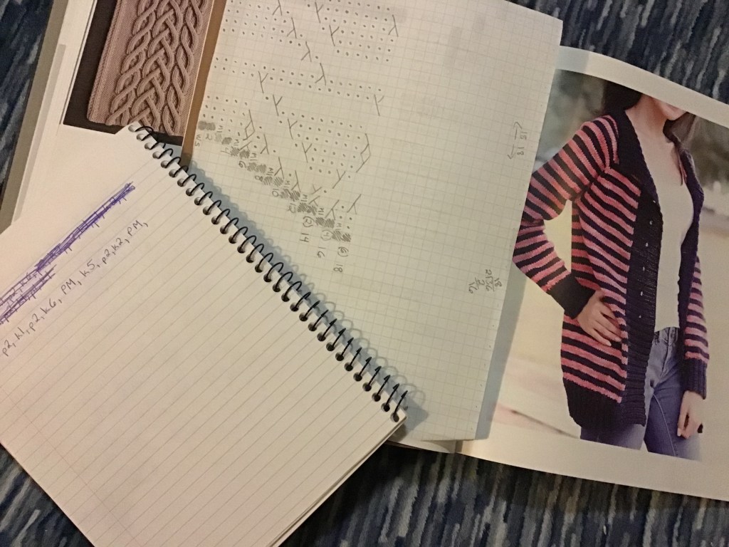 Next up is my sister’s cardigan. Her birthday also just passed and I’m hoping she won’t mind that her gift is a month late. I’m trying to keep it simple, but it rarely ever is with me. I’m slowly plodding my way through charting and pattern writing the plain top-down pattern with braid cables inserted on the body and the sleeves. It’s difficult and slow, but so worth it and so much fun! I’ve turned into a sweater maniac!