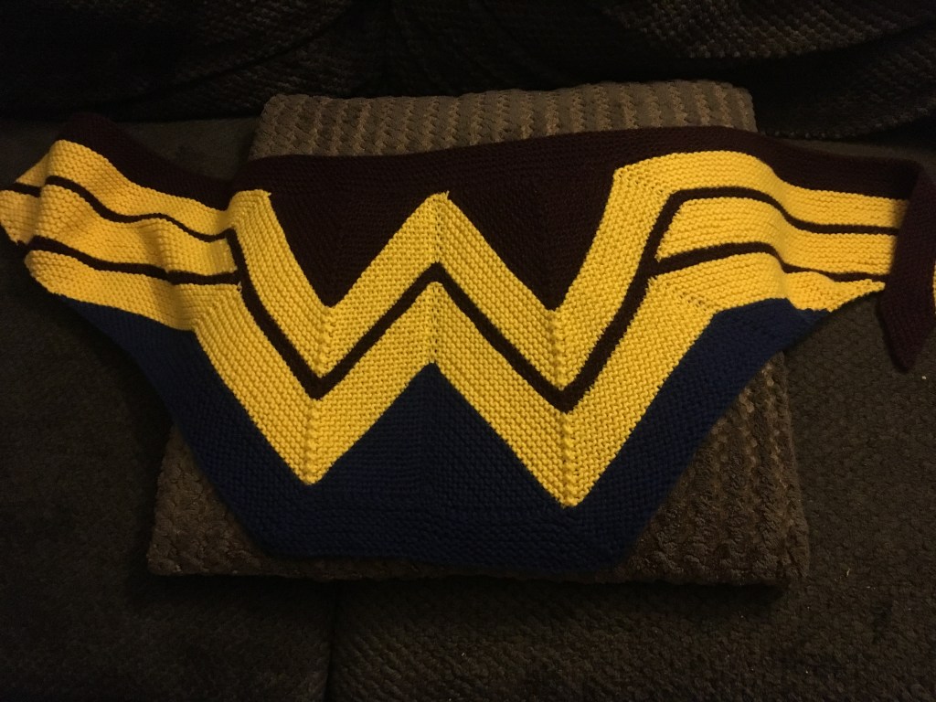 It all felt so right in my hands. Making this wrap brought me so much joy. The child in me was tickled to be making something representing a character and a belief that I have had since I can remember. The nerd/geek in me began reading more comic history and Greek mythology while creating wearable fan gear. The knitter in me loved combining passions and creating something just for me. The woman in me loved thinking about all that she represents and what kind of a woman I really am.