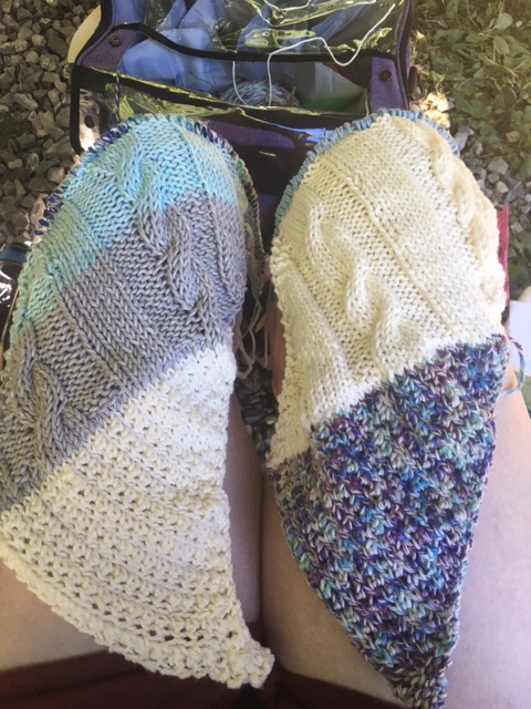 I had big plans for shawls during my time in the woods. I was going to complete a section on both shawls every day. I should have known better. I’m not upset I couldn’t keep up- just amused. It’s my nature to have big dreams and yet be utterly happy with reality.