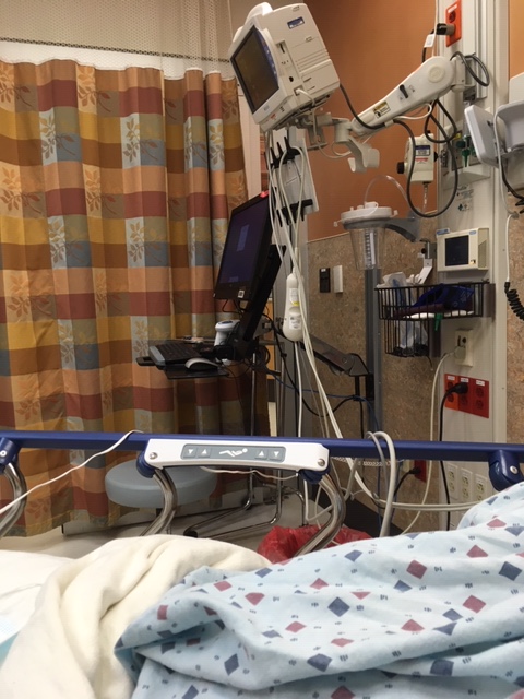 So finally, I get to the hospital and get the kids into my mother-in-law’s car, double back to my car for my mask, and finally head in to the ER and find my husband. He was doing ok while I sat with him. A doctor and a few nurses came and went. Then, when the doctor came back to ask some more questions, another stroke started. Well, we know now that it was a TIA (I think that’s what they said), which basically means it looks like a stroke, acts like a stroke, but is not actually a stroke.