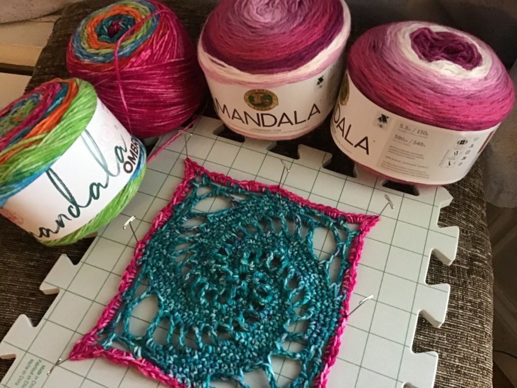 And I finally bought some blocking mats. This square was a lot of fun to work up. It only takes a time or two through with a new granny square pattern and then it’s in my memory for the rest of them. I am not blocking it yet, I just wanted to pin it out to show it off. These will be for my kids. I’ll figure out what it will be when I get there.