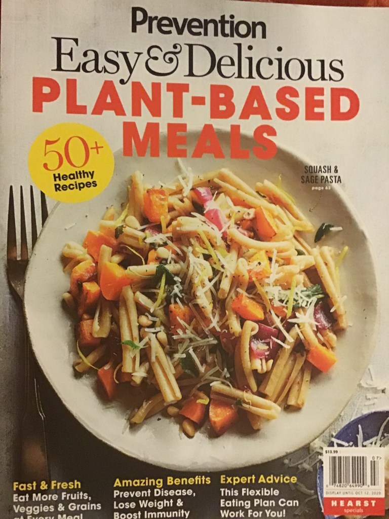 While I have never had much success as a vegetarian, I have spent most of my life on a more plant based diet. My mom tried to have a a few meatless nights a week when we were growing up. A few that we thought were meat, were probably tofu or some other substitute. She was good at sneaking it in without us knowing and sometimes telling us later. So I picked up this Plant-Based Meals magazine for some inspiration.