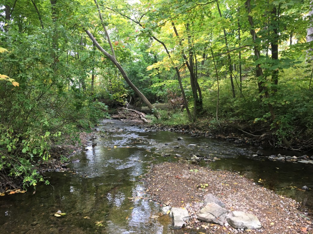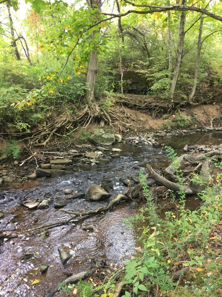 I had been getting myself ready for a long day with a sinking, sucking, pit feeling in my gut, tensing and stiffening my muscles. I made it through my first appointment (every client always gets my best every time, no matter what’s going on with me. If I don’t think I can do that, I reschedule) and looked to see that my next appointment had canceled. I took that opportunity to check out this park nearby that I have been meaning to scope out for a while. It was exactly what I needed. I stood by the stream and walked up and down the path next to it while knitting a hat. It was wonderful.