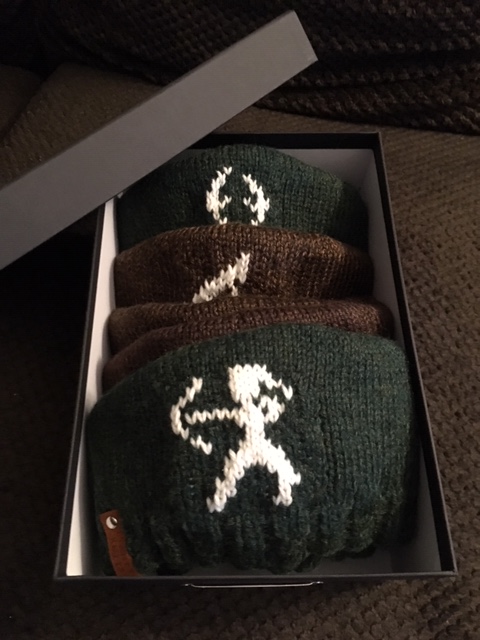 I’m pretty jazzed (yes, jazzed) that the owner likes them enough to sell them. It’s the only thing I’m selling right now and what is at the studio is what there is. I bring more in as I make them and as people buy them. I’m trying to get ahead a bit here, so I can work on some Christmas/holiday presents, while not allowing myself to begin hating the hats. I figure I’ll try two more designs for the hats, using the current brims and figures, but adding some cabling for a bit more warmth. I also have ideas for fingerless mitts and scarves, but I’m trying not to get ahead of myself.