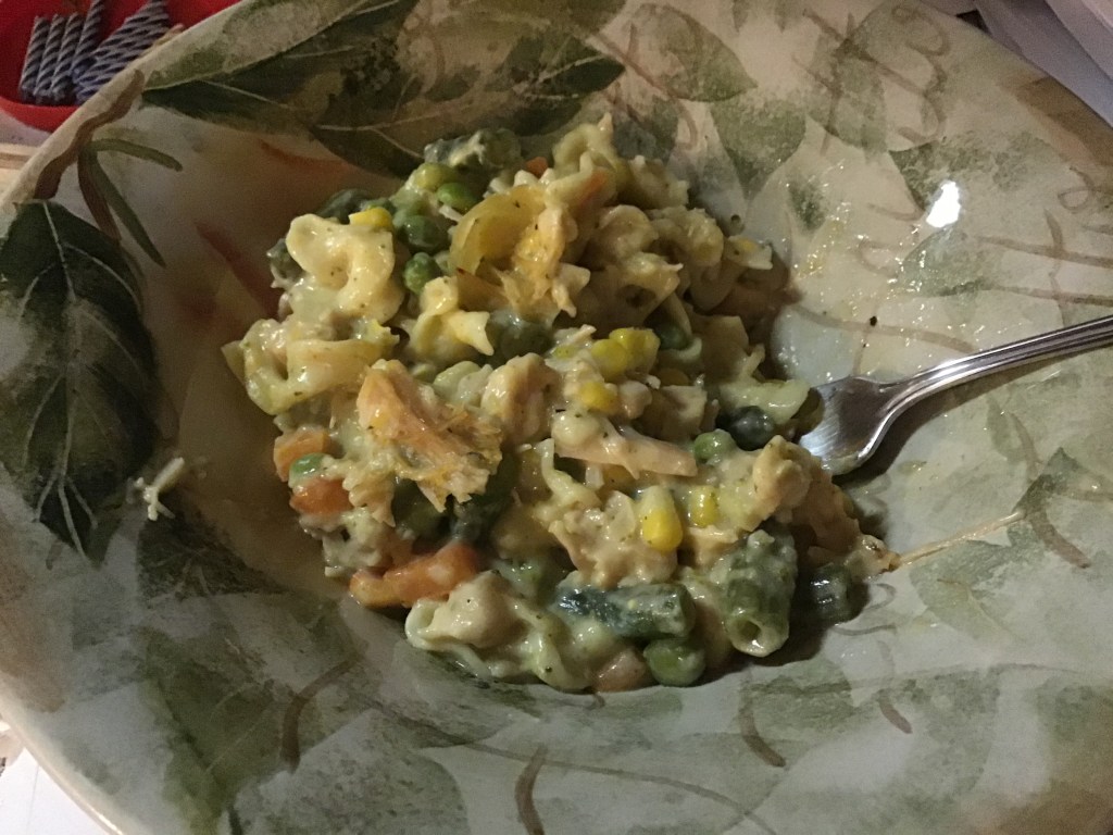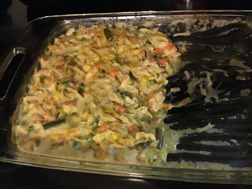 I also love casseroles for dinner. I throw a bunch of stuff together and it bakes while I can go about my business with only a minimal amount of attention from me. Egg noodle chicken casserole is one I often make. Dry egg noodles, canned chicken, frozen vegetables, chicken broth, and cream of broccoli or potato soup. I let that all cook up, then I mix it and add cheese and bake a little longer. This last time I got all the portions right and the spices. It was my best version yet.