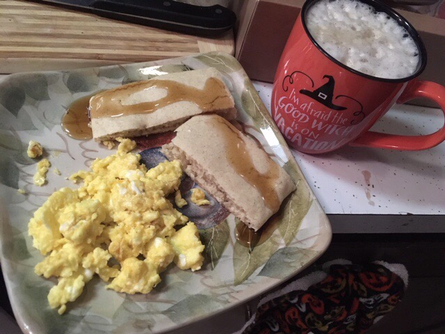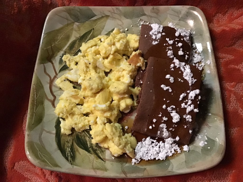 The first time around, I made my usual cinnamon pancakes. A few days later, I made chocolate ones with cocoa powder, cinnamon, and brown sugar, which were topped with powdered sugar. Definitely a recipe to repeat.