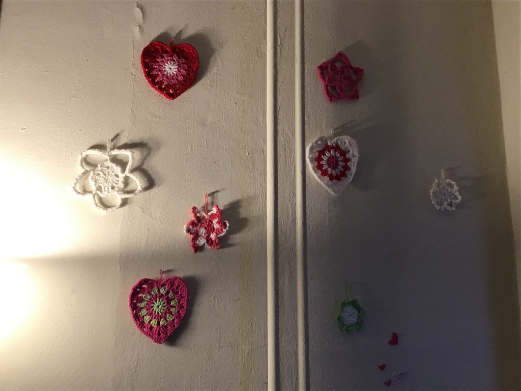 What I do do is put white snowflakes, yellow flowers, and hints of green around the house. I also begin to decorate for Valentines Day, so you’ll find hearts with a mix of the traditional colors (red, pink, and white) and some bits of green for the season around the house.