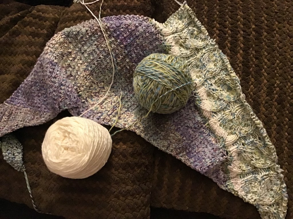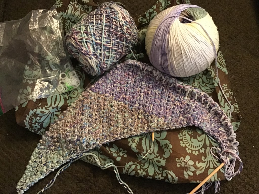 So I’m making a third version of my Sister Shawls, only this one is not a Sister Shawl, but is definitely for someone amazing. I’m using two strands of yarn for this one and am hoping to make it a bit smaller than the last two. This first section turned out beautifully and it was fun working these stitches again.