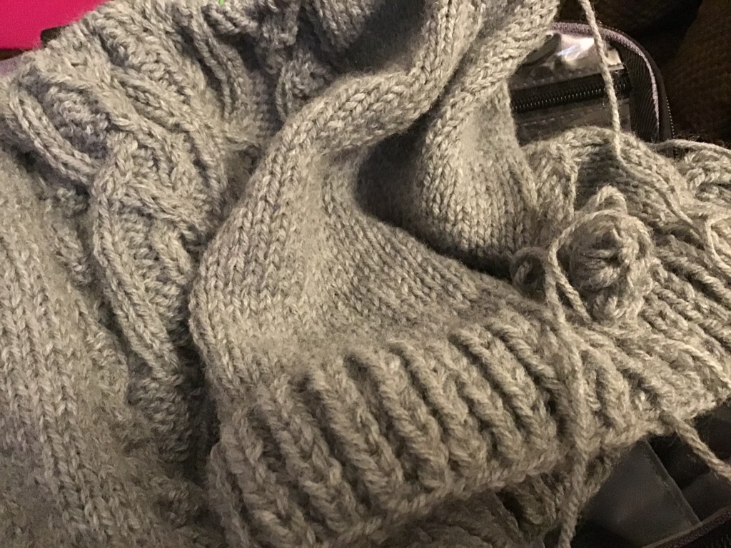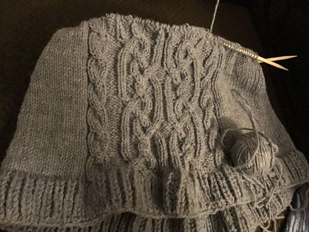 I’m almost back to where I was when I ripped it all out and am so much happier with this pattern. It is much more my husband’s style/personality. The rope cables are fun too and I’m thinking of using them for my sweater. I bought some beautiful wool yarn last year when this whole mess began that has been waiting for the perfect pattern. I want a pullover, but that’s all that’s firm. Everything else is a morphing vision in my head, mixing and matching different patterns and styles.