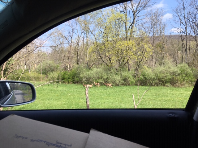 My plan today was to take stuff over to the new house and set a few things up. I got a bit delayed enjoying my coffee and relaxing before I loaded up my car and headed out. It’s about an hour drive from our current apartment and for some reason the thought of making this trip on my own filled me with throat constricting anxiety. I even started to turn around. That’s when I came across these deer hanging out in the road. We just sat staring at each other for a few moments while I took these pictures. I felt much better about everything after that. I also always feel better once I get to the house. It’s definitely becoming home quickly.