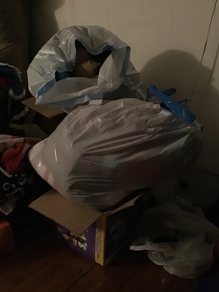 The pile of donations is ever rotating as well. My mom has taken several bags on her way home up in New York State. A friend of mine has taken a few boxes of books and toys to a place near her. And I have dropped off just under a half a dozen bags of clothes myself. Here’s even more and I guarantee we’ll have still more before this is over.