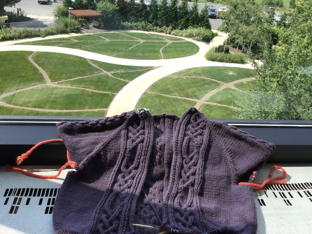 One perk of being stuck in the hospital is time to knit. I wanted my most soothing projects with me and my purple sweater is definitely that. The poor garment has been sitting on the back burner for so long that it took me halfway through a row to realize I had forgotten to mark a row. So I ticked back and fell right into the rhythm of it. It felt good to just sit with my knitting.