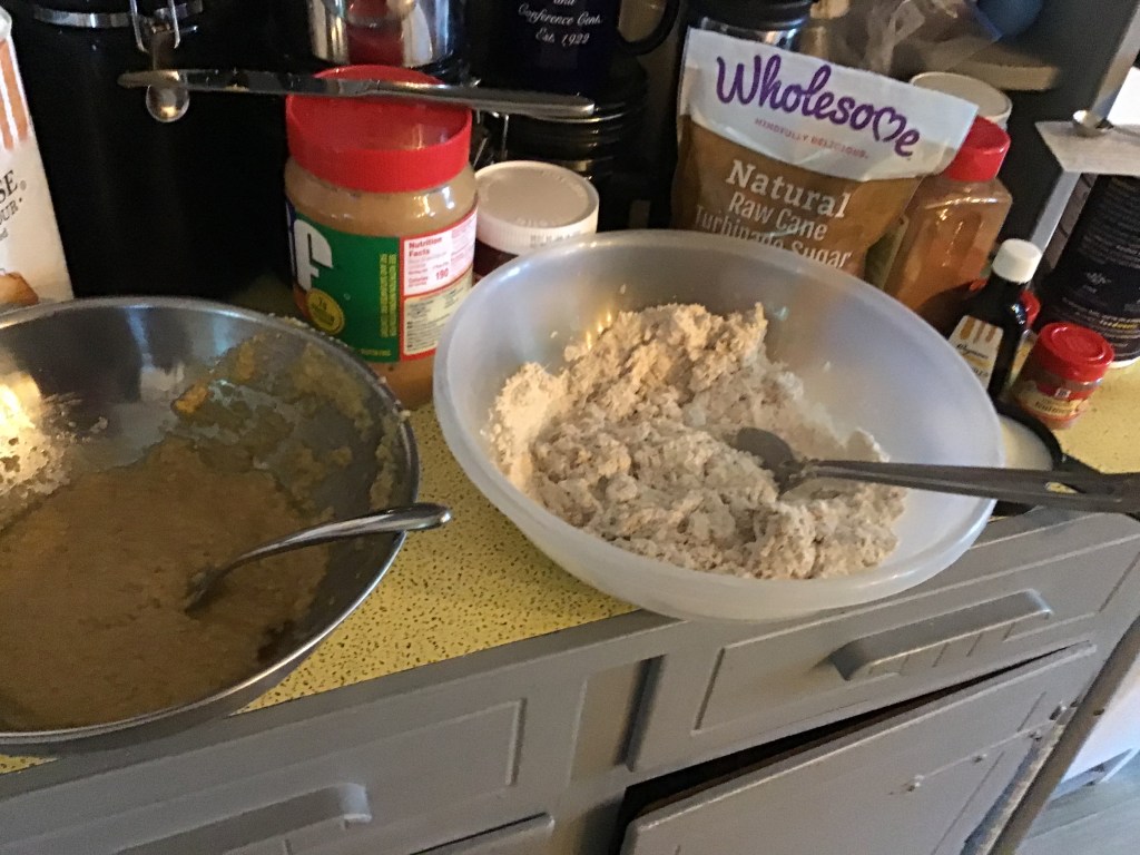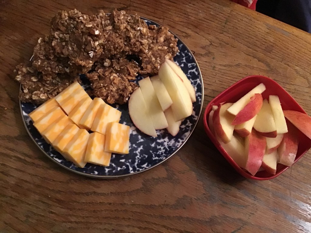 They made for a wonderful bedtime snack with some apples and cheese. And the girls enjoyed them for a snack at school. I changed the recipe quite a bit, so this version has dried apples, golden raisins, sunflower seeds, honey, vanilla extract, oats, oat flower, cinnamon, almond butter, and some other baking basics. I’m so happy the kids like them.