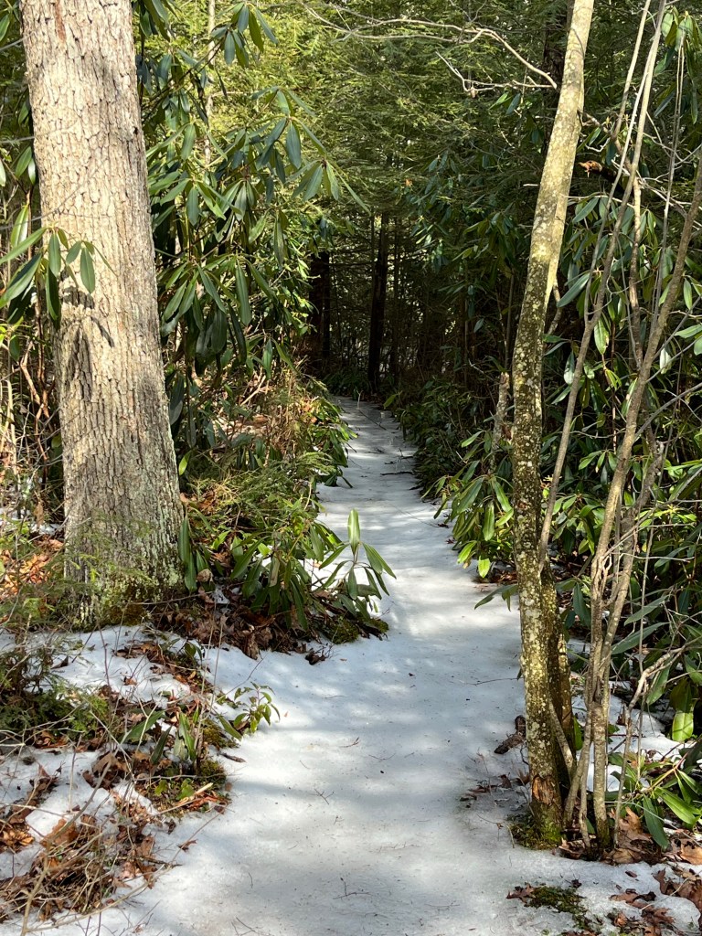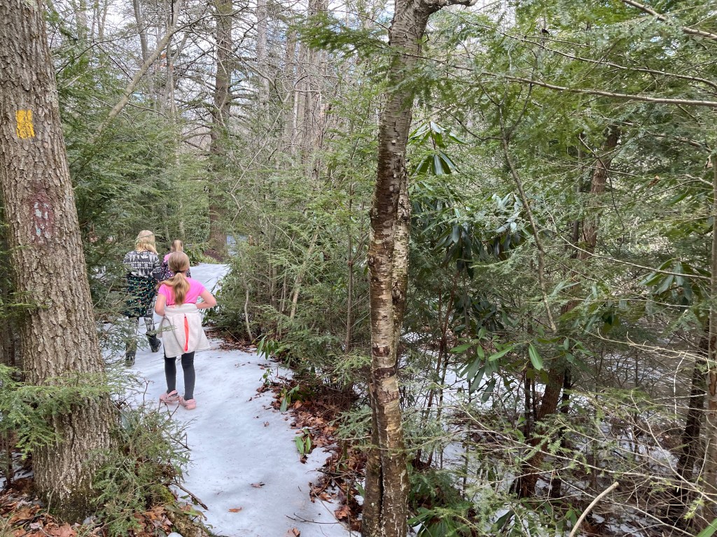 When we arrived the sun was shining and no one else was on the trail. It was a fun adventure of mud, snow, and some ice.
