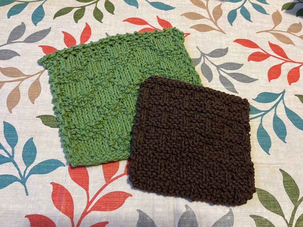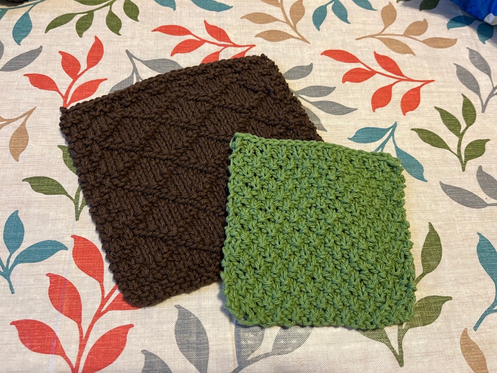 The brown one is a diamond stitch with a basketweave border. The green is moss stitch. It took me a bit to get the stitch count right so the patterns work. I made a couple attempts that didn’t turn out to be what I wanted. Then I finally landed on the right combinations.