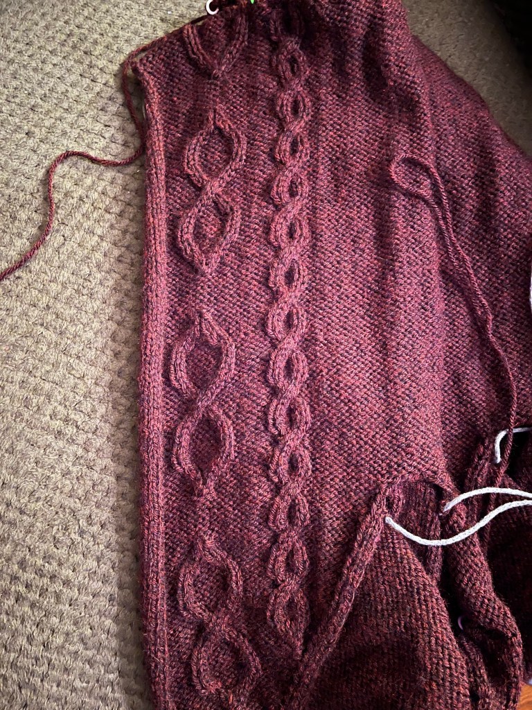 I’m making some real progress on my oldest’s sweater. With no other projects in the works I’ve been able to really focus on this piece.