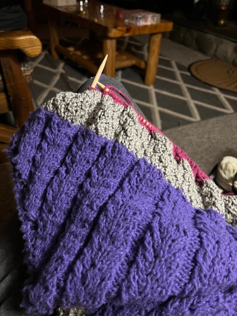 I did make it to the beach on our second day. I really prefer lake beaches in the woods, if I’m in the mood for one. My mom took the girls on her own the first day, so I had some time to really rest. At night I watched what I wanted and knit to my heart’s content. The rest has been good.