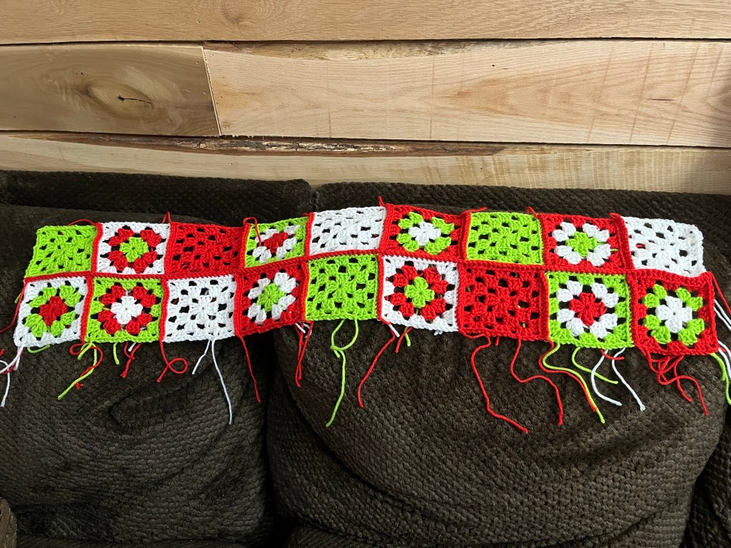 I didn’t really accomplish much today. I just sat and finished four of these squares and then single crochet stitched them together. All the ends are still unwoven.