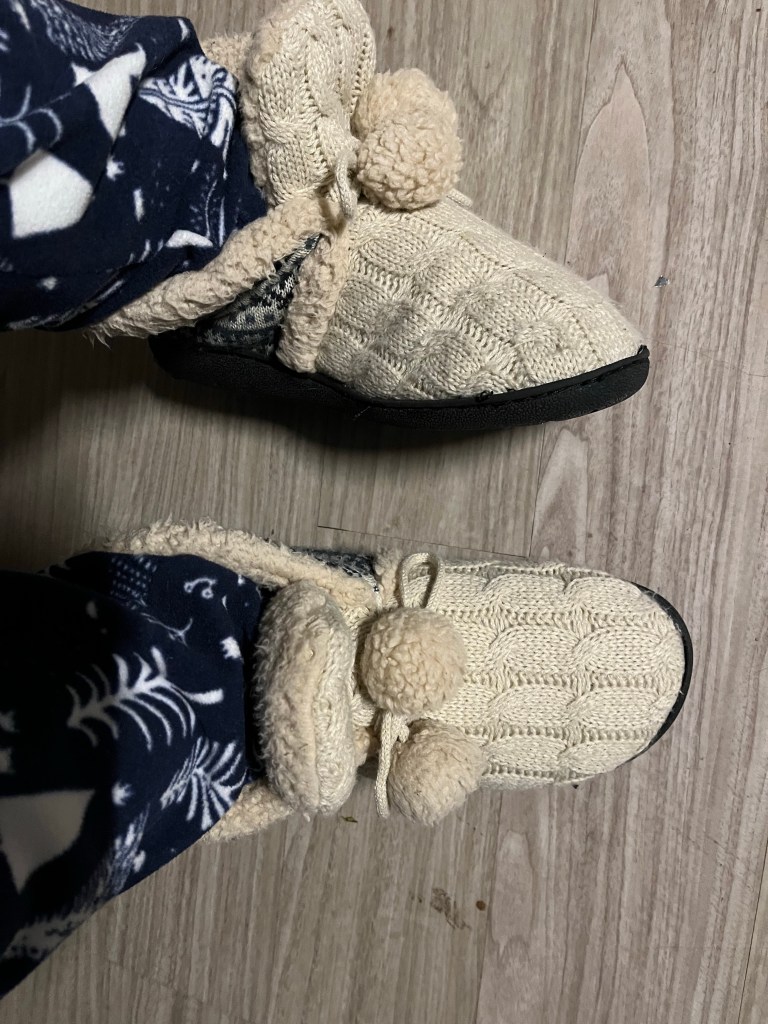 I reheated leftovers and served everyone. My oldest was still hungry, so made chicken nuggets for her and her sisters, and her special sauce they all love so much. While they ate them up, I sat and sewed my new slippers soles back onto the cloth bit. Good as new once more.