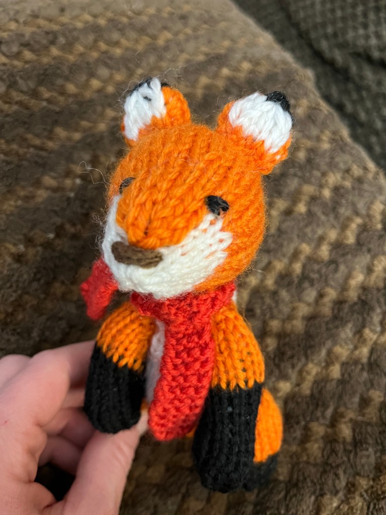 Some close ups of the fox too. He was fun. Gave me some confidence to make the others. We’ll see if I ever go online to get the other patterns.