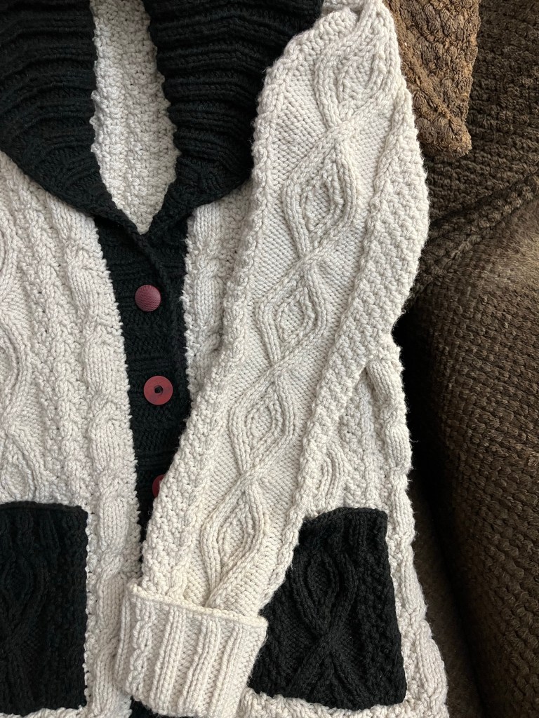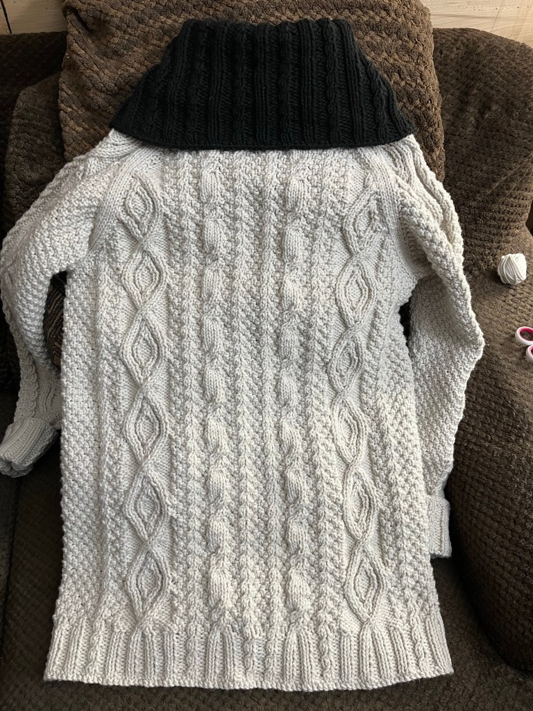 I’m especially happy with the sleeves. They’re very cozy and the cuff design is all my own, simple as it is.