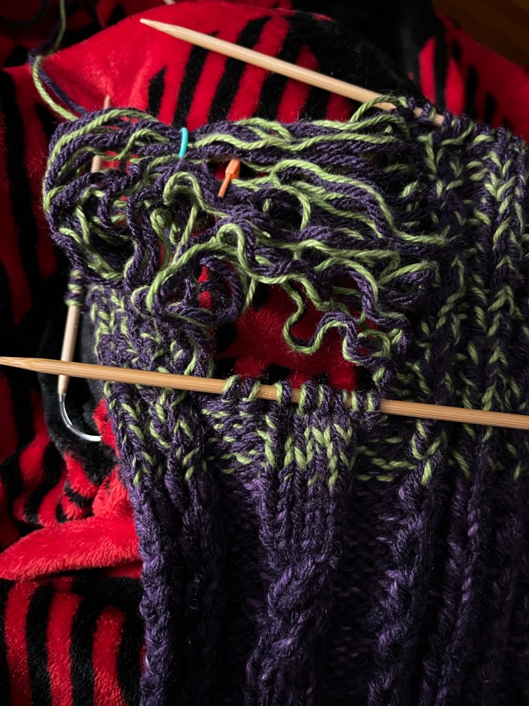 So, I’m still having a lot of fun and am excited to get it long enough to begin making the arm hole. That’s going to be fun!