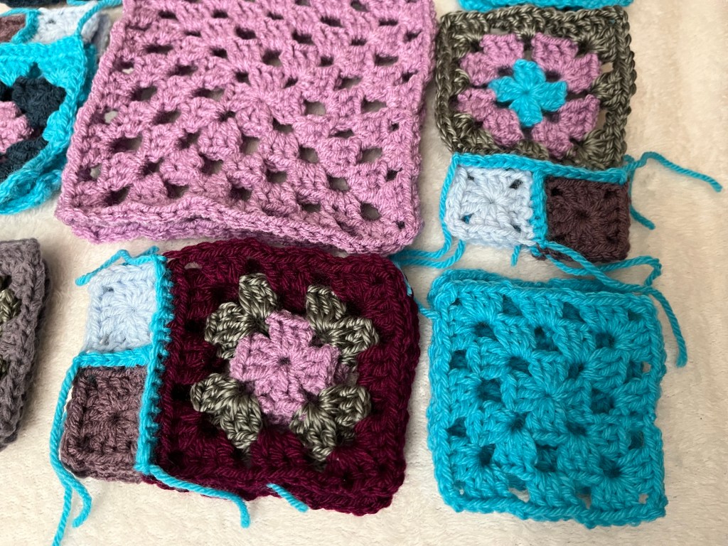 I actually hugged them a few times. Squishy success. A bit of added love. Then I got to play around with how to lay the whole thing out and set about carefully joining them in rows and then joined the columns.