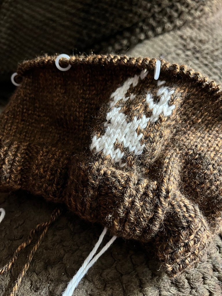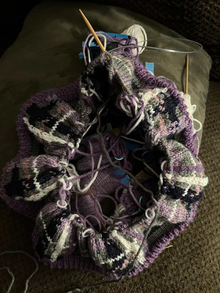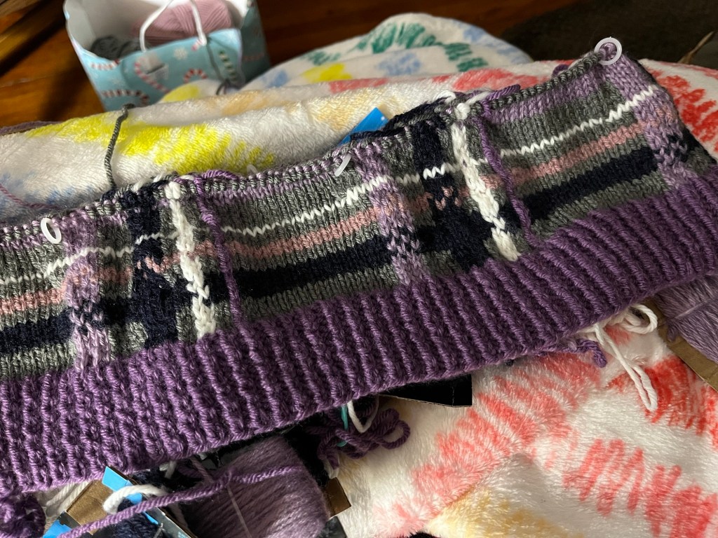 I guess my two cabling projects will just have to wait. The Buffalo plaid will take another year (most likely), but I think I can get the tartan done before winter is over. If I can stay focused. I want it big so it will hopefully sit a certain way. I’m experimenting with what I like. My favorite kind of knitting.