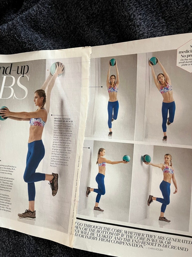 Today was abs, but I forgot how much the shoulders and hips get involved with this routine. I warmed up with an air/water yoga flow that would help wake everything up. Then into the workout with an 8lb dumbbell for the first two moves and a 5lb one for the last.