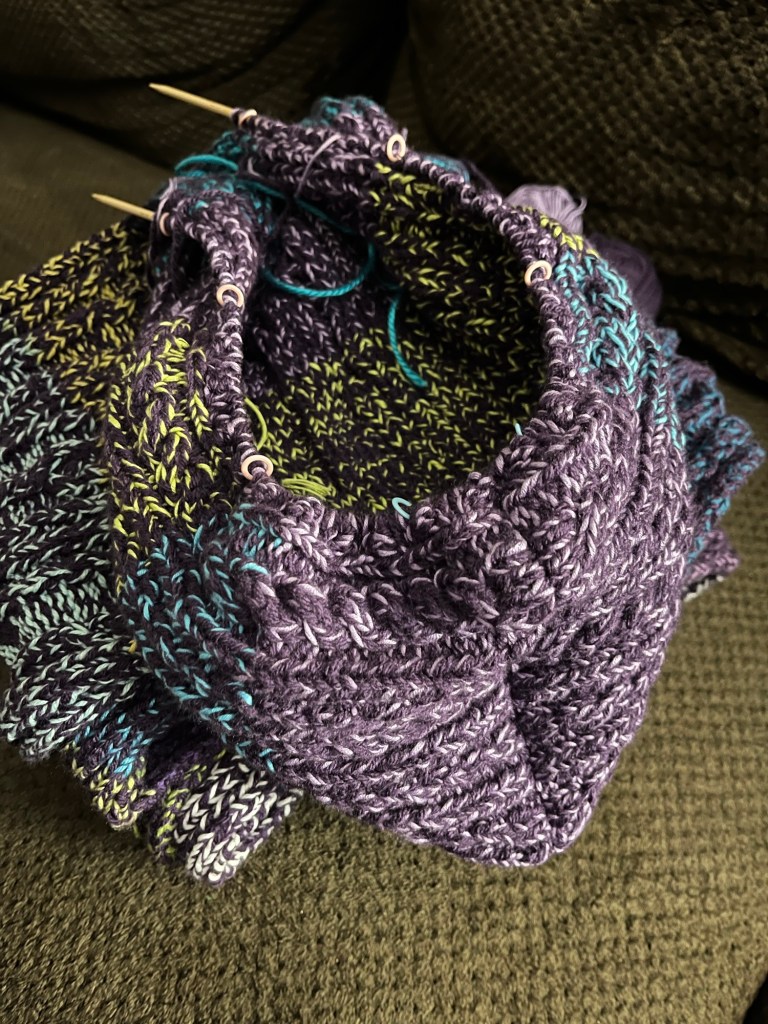 I’m definitely happy with the main part of the hood. It was fun and quick. Although, I’ve also been pretty determined. There are these mitts I want to knit., but I need to finish this first.