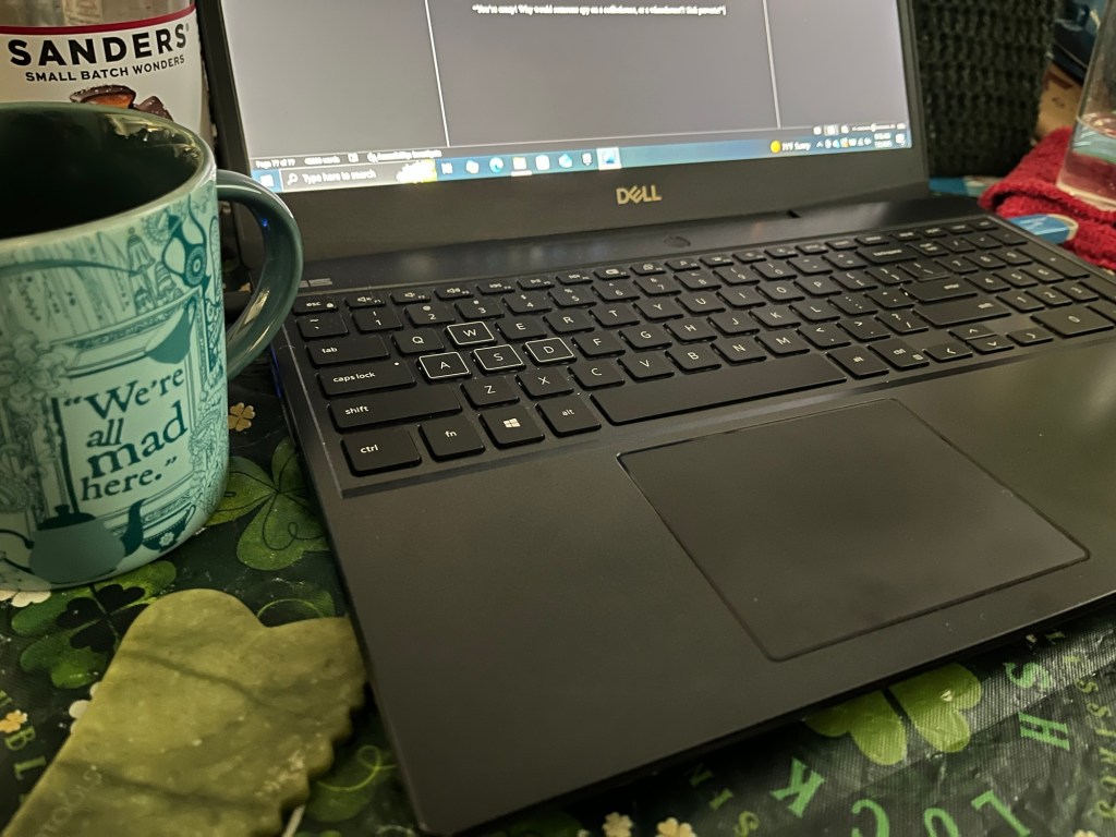 I know I have a bad set-up. My two chair options are: too tall for the floor but good for the table, or close enough to the floor, but too low for the table. Plus it’s a laptop. Worst typing position.