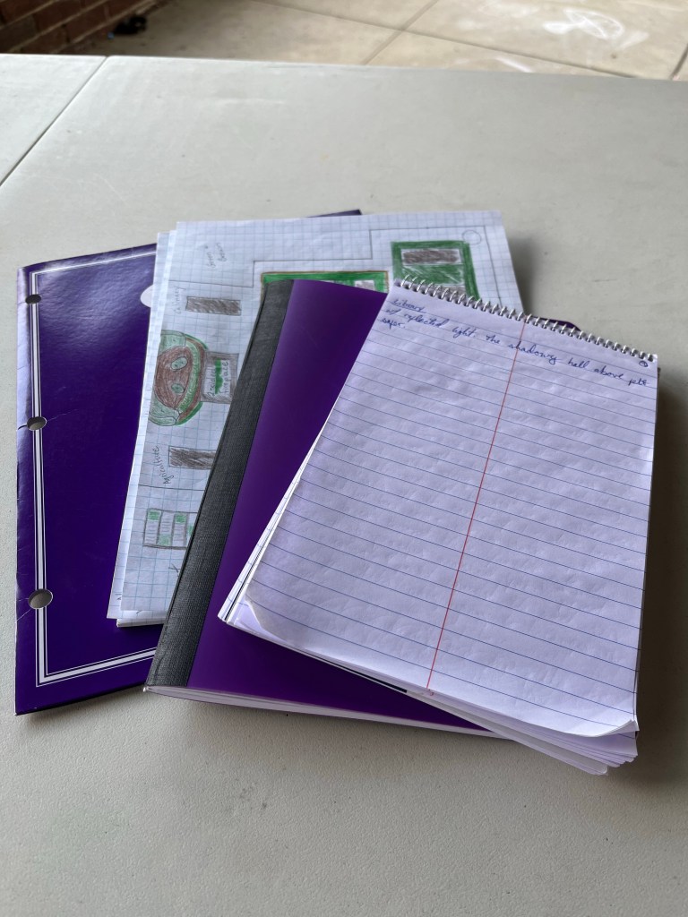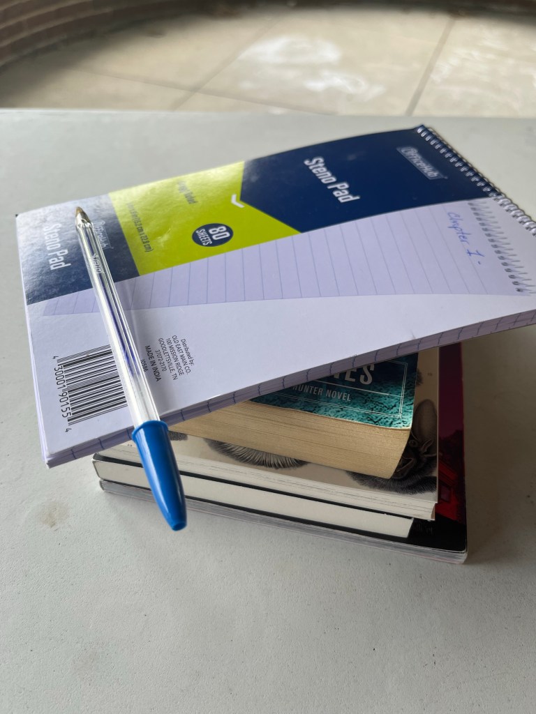 I’m trying to delicately balance the benefits of my neuroses’s with their less than helpful drawbacks. The folder not only keeps everything in one place, but protects it all against damage from me. The composition notebook organizes the finalized background information, quick references of important plot details to keep me consistent, lists of important references to foods, plants, colors, cultures I’m pulling from, and a quick reference to what’s in each chapter as I’m writing so I can remember what secrets I’ve revealed and when.