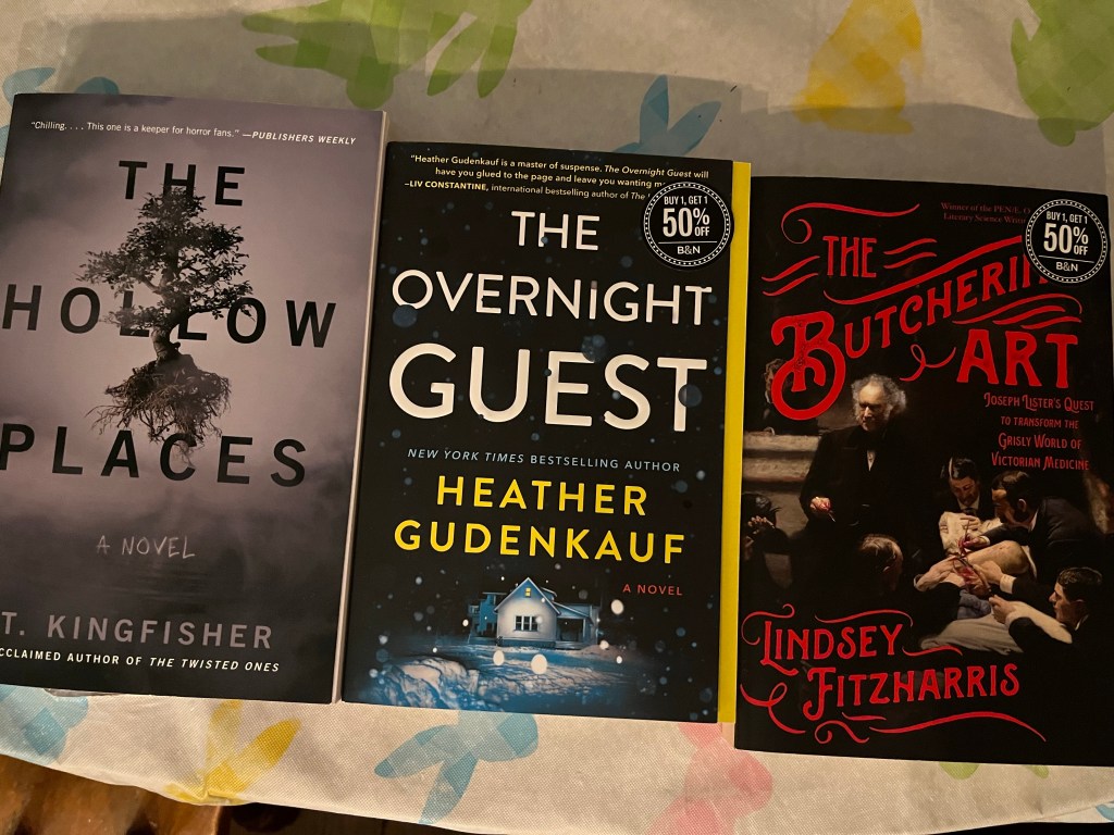These are my latest finds. T. Kingsolver wrote The Twisted Ones, which I loved, so I’m going to try The Hollow Places. Then, The Overnight Guest caught my eye. A psychological thriller. I’m hopeful. After that, I almost lost hope of finding another to get the half off.