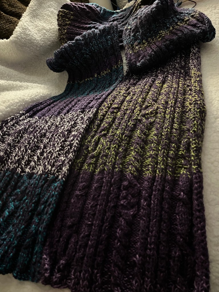 Finished pictures will come soon. I’m just in that phase of reconciling what I made with what I had envisioned. If I make it again, I’ll make some changes for sure, but it’s growing on me each time I wrap myself in it. It’s mostly the hood that’s bugging me.
